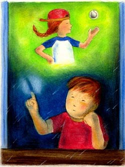 Hali and I used to play baseball together. She was a hard throwing lefty, the best eight year old pitcher in Plainville, better than any boy. I played right field. They always put the worst player in right field and it was true that I had trouble catching the ball. One time a kid hit a high fly to me and just when I thought it was going to land in my glove it flew right by and plunked me on top of my head. But Hali said they put me in right field because I had the best throwing arm on the team, except for her of course. Hali always looked on the bright side of things.